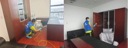 施工第3道工序:對(duì)細(xì)小家具、抽屜、床墊、木制鑲嵌柜子進(jìn)行除味工作,確保異味明顯降低,無刺激異味(人員可以正常進(jìn)出)。