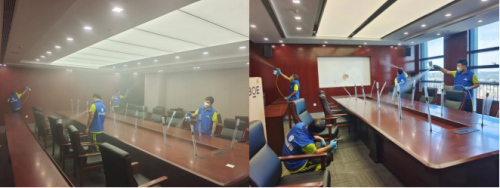 施工第1道:完全分解空氣中游離態(tài)污染物,采用方法:全空間霧化技術(shù)(空調(diào)新風(fēng)窗戶需關(guān)閉)。