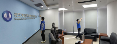 施工第2道時(shí):完全分解空氣中游離態(tài)污染物,采用方法:全空間霧化技術(shù)(空調(diào)新風(fēng)窗戶需關(guān)閉)。